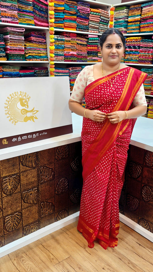 Athvaitha Sarees offers a wide range of Madurai Rani Sungudi designs to suit different tastes. I found traditional as well as contemporary options, and the unique patterns and motifs were truly captivating.