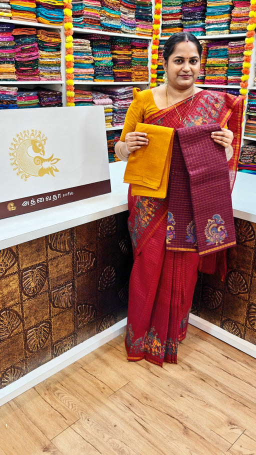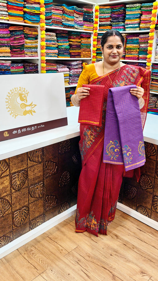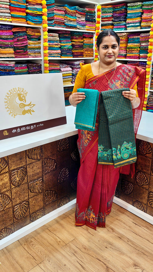 View full detailsMaterial :Pure Cotton Brand : Heritage Rani Sarees Blouse : No Length of saree : 5.50meters ( 6 Yards ) Wash & Care: Gentle Hand wash and Ha...