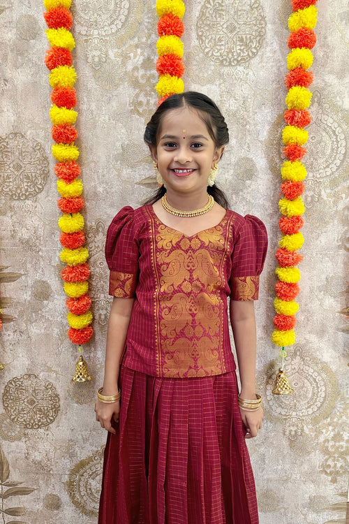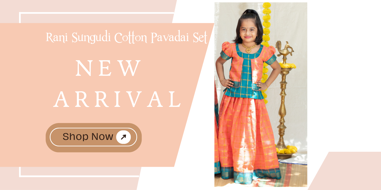View full detailsDesign: Bairavi Color: Coffee Brown Brand: Athvaitha Fabric: Rani Sungudi Cotton Type: Kids Pavadai Sattai Care: Normal Wash Dispatch Time: 10 to...