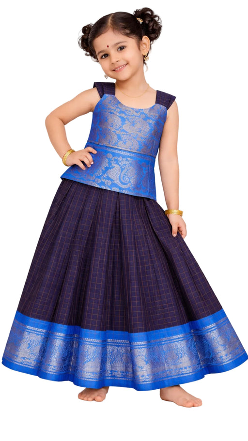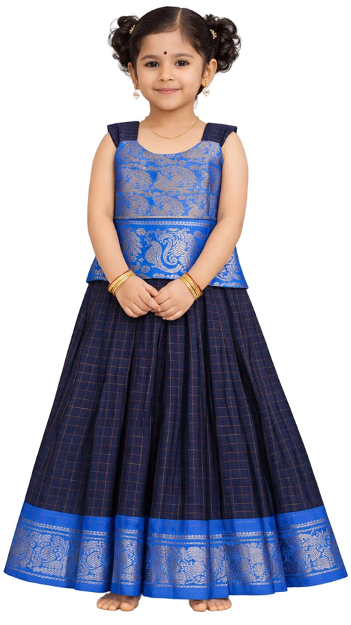 View full detailsTraditional Rani Sungudi Cotton Kids Pavadai Sattai - InkBlue With DarkBlue