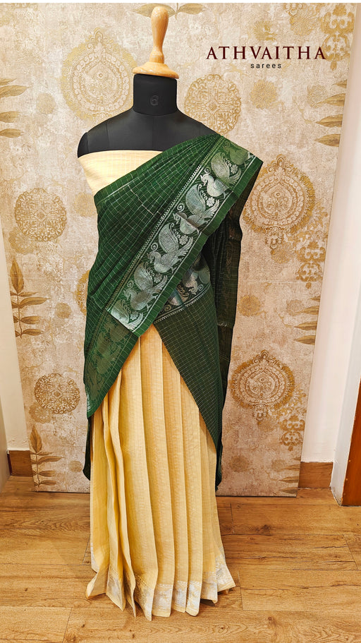 Original price Rs. 4,300.00Original price Rs. 4,300.00 - Original price Rs. 4,300.00Original price Rs. 4,300.00Current price Rs. 3,800.00Rs. 3,800.00 - Rs. 3,800.00Current price Rs. 3,800.00Rani Cotton Silver Half Saree Material-OffWhite-BottleGreen