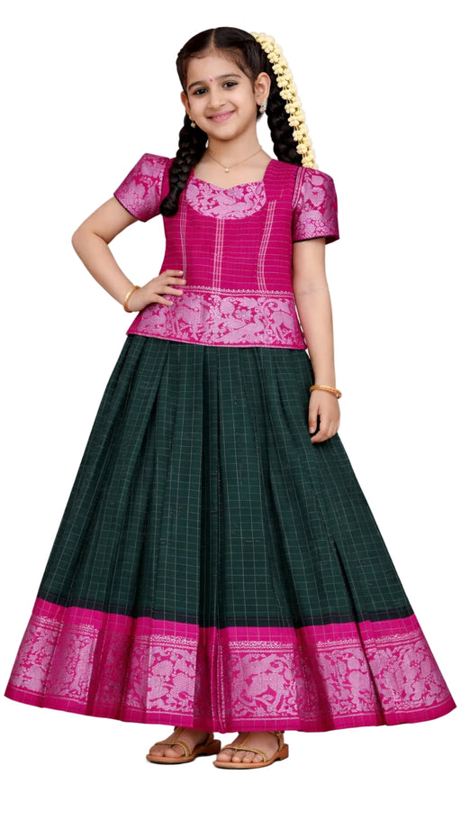 View full detailsTraditional Rani Sungudi Cotton Kids Pavadai Sattai