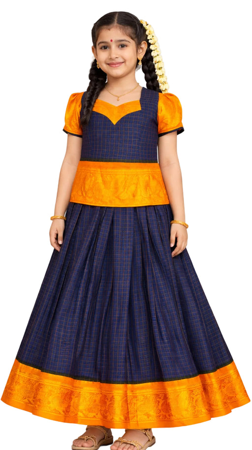 View full detailsTraditional Rani Sungudi Cotton Kids Pavadai Sattai - InkBlue With DarkBlue