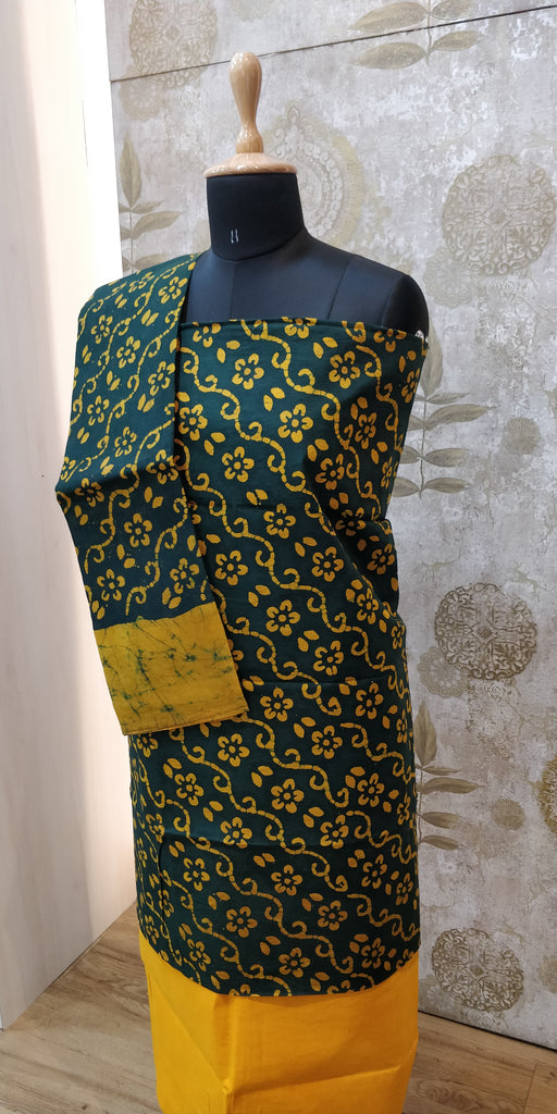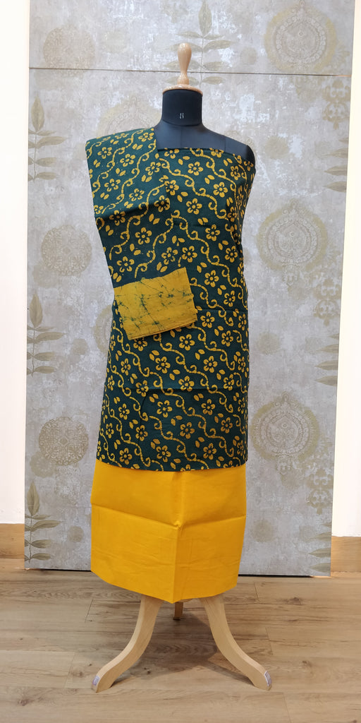 Original price Rs. 1,650.00 - Original price Rs. 1,650.00Original priceRs. 1,650.00Rs. 1,650.00 - Rs. 1,650.00Current price Rs. 1,650.00Rani Chudidhar Material-Bottle Green-Yellow-013