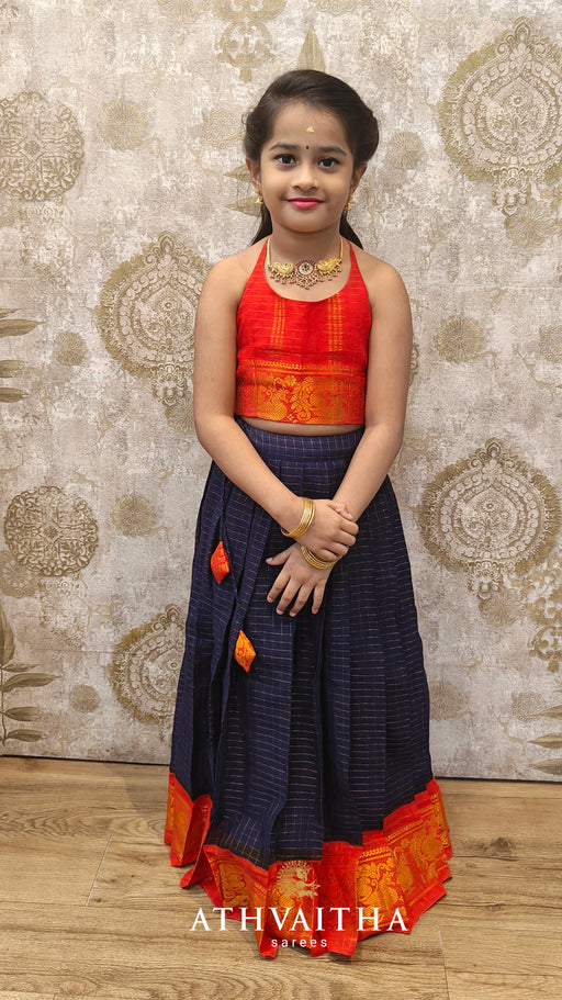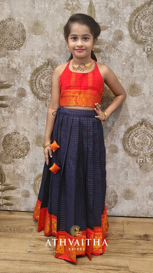AthvaithaDesign: Rani Color:Blue With Red Brand: Athvaitha Fabric: Rani Sungudi Type: Croptop With Skirts Care: Normal Wash Dispatch Time: 10 to 15days Ti...