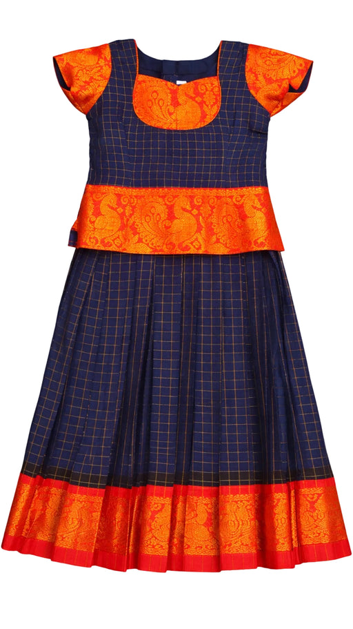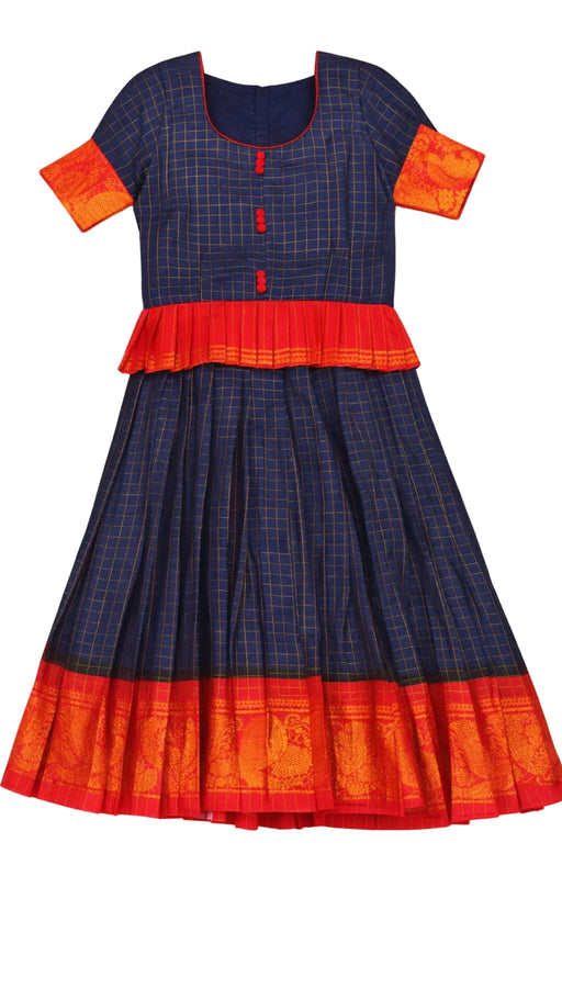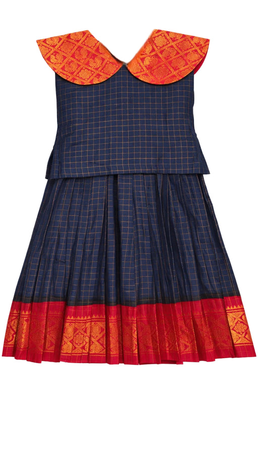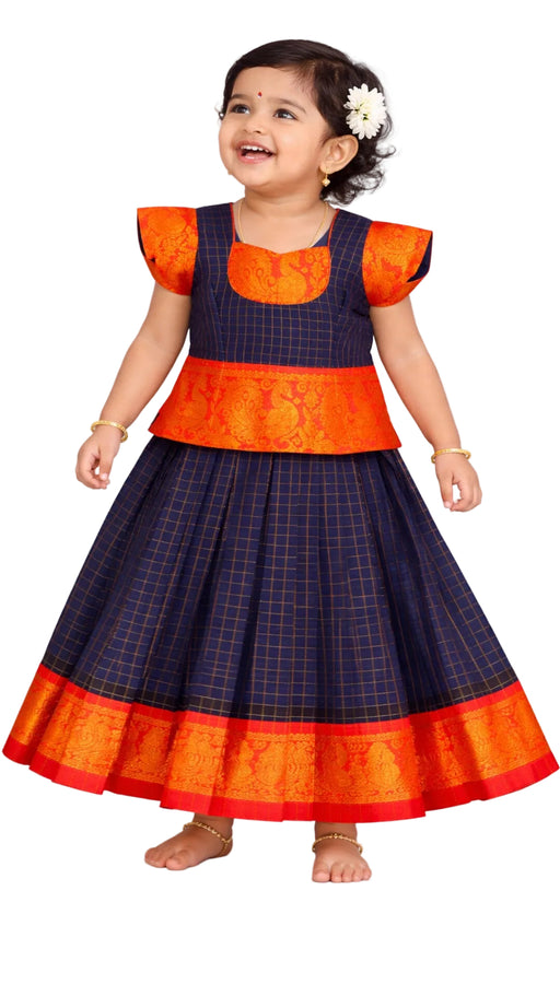 Traditional Kids Pavadai Sattai Navy Blue Rani Sungudi Cotton Dress
