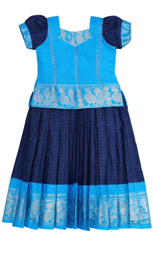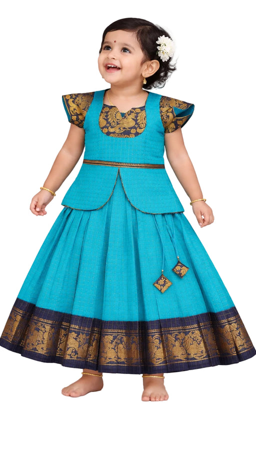 Kids Pavadai Sattai Blue Sungudi Cotton Ethnic Wear for Girls