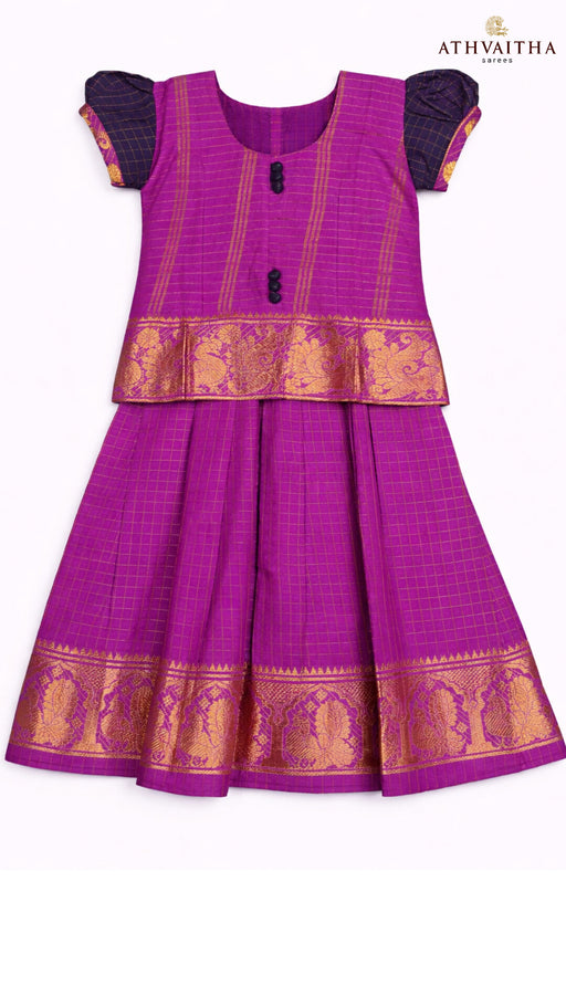 Kids Pavadai Sattai Magenta Rani Sungudi Cotton Ethnic Wear for Girls
