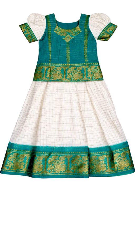 Traditional Kids Pavadai Sattai Off White Rani Sungudi Cotton Dress