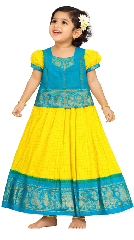 Traditional Kids Sungudi cotton Pavadai Sattai for young girls