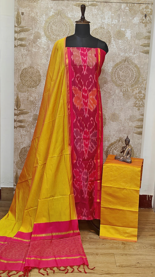 View full detailsIkkat Sico Silk Cotton Salwar Material - Pink With GoldYellow