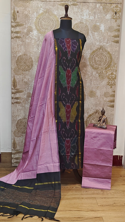 View full detailsIkkat Sico Silk Cotton Salwar Material - Black With OnionPink
