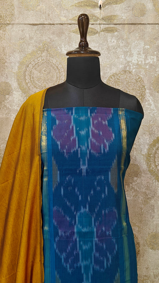 View full detailsIkkat Sico Silk Cotton Salwar Material - PeacockBlue With Mustard