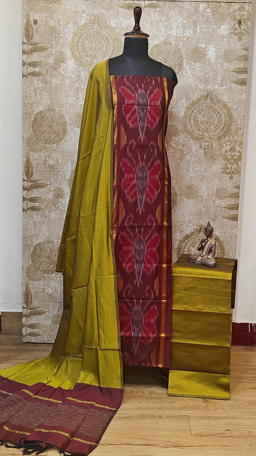 View full detailsIkkat Sico Silk Cotton Salwar Material - Maroon With OliveGreen