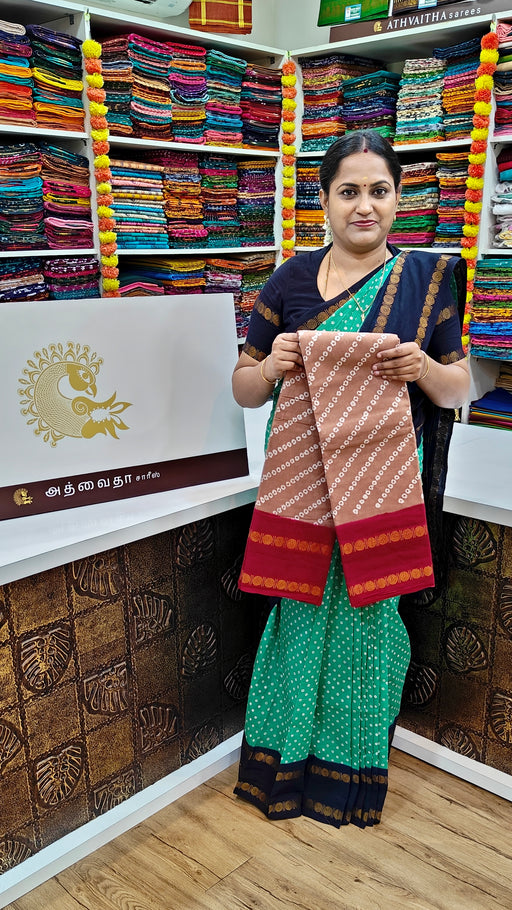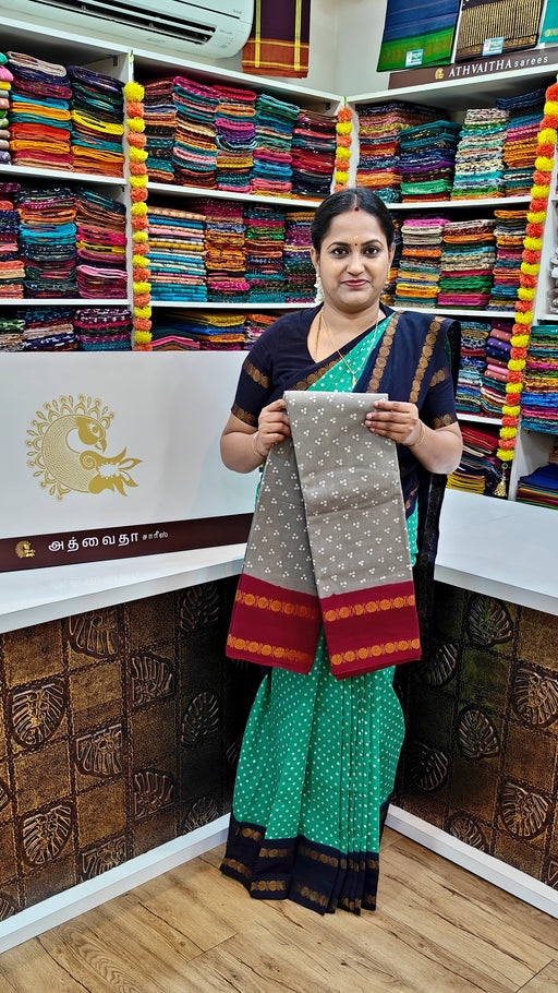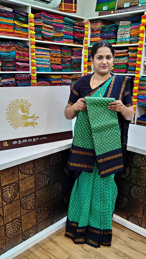 View full detailsHeritage Rani Sungudi Cotton Polka Dot With Doubleside Rudraksha Border-Contrast