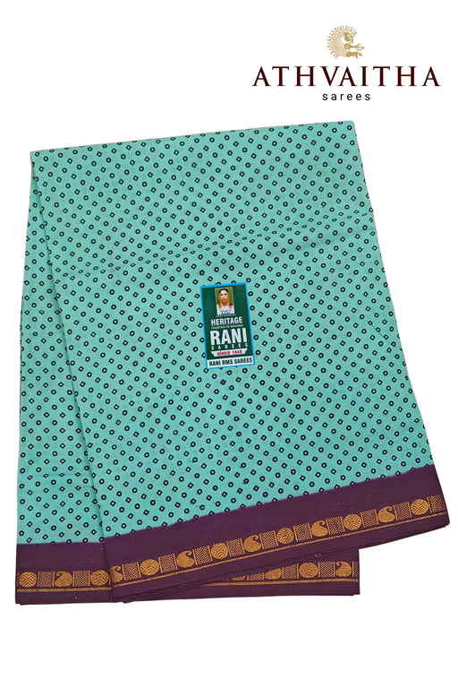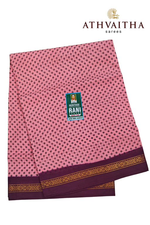 View full detailsHeritage Rani Sungudi Cotton Polka Dot With Doubleside Rudraksha Border-Contrast