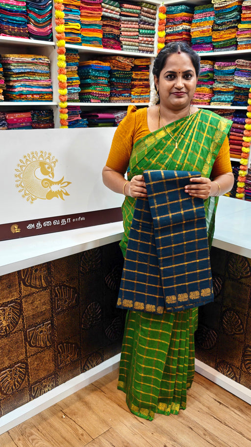 View full detailsRani Sungudi Cotton Big Zari Checks Self - PeacockBlue