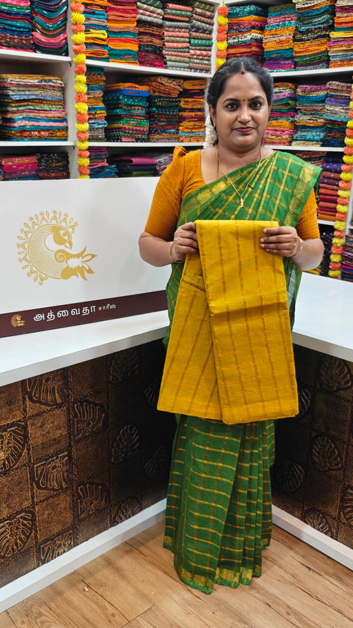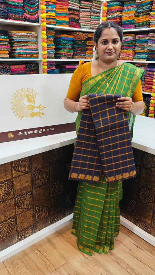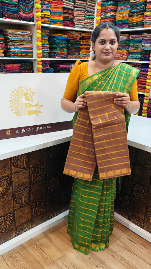 View full detailsRani Sungudi Cotton Big Zari Checks Self - OliveGreen