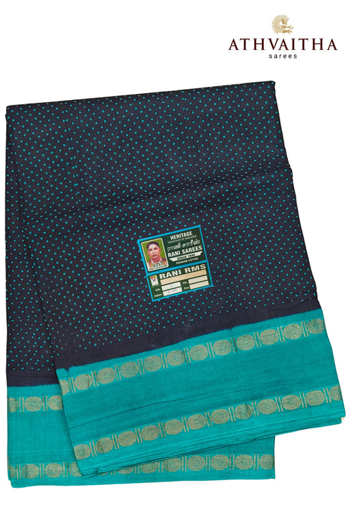 Rani Sungudi Madurai Cotton Small 1Dot With Contrast Rudraksha Border - 10.5Yards Madisar
