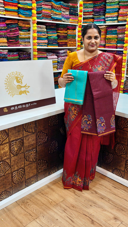 View full detailsRani Zari Checks With Kalamkari Design Contrast With Blouse - Annamayil