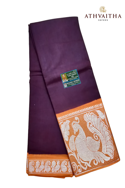 Rani Plain Long Contrast Silver Border - CoffeeBrown With Orange