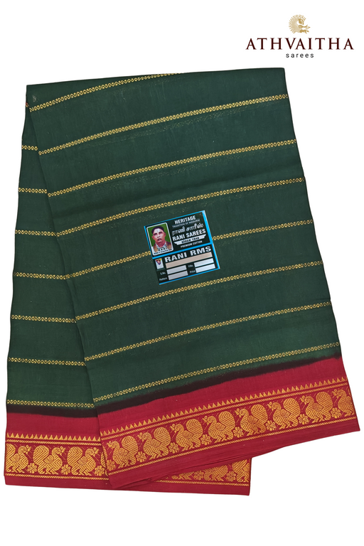 View full detailsRani Sungudi Cotton Saree With Doubleside Contrast Border Veldhari - Red-BottleGreen