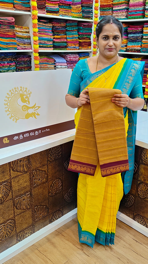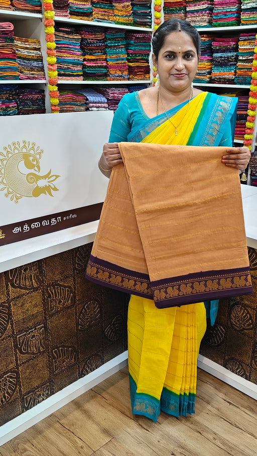 View full detailsRani Sungudi Cotton Saree With Doubleside Contrast Border Veldhari -LightMustard-Purple