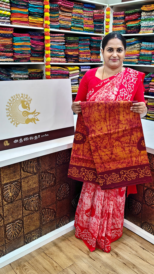 View full detailsRani Sungudi Pure Cotton Sarees Tye&Dye 120's-Maroon With Orange