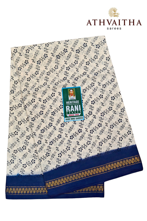 View full detailsHeritage Rani Sungudi Sarees 1 Inch Border Double Side Border-OffWhite-DarkBlue