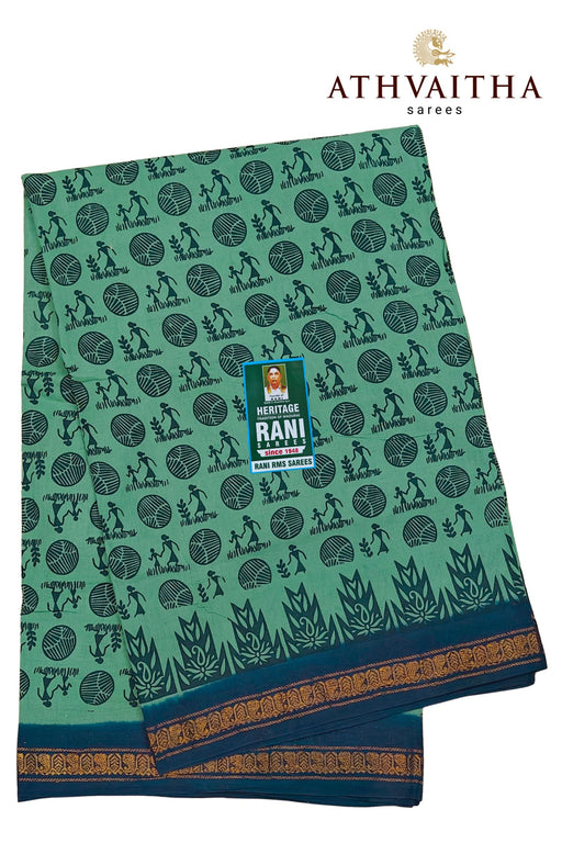 View full detailsHeritage Rani Sungudi Sarees 1 Inch Border Double Side Border-PistaGreen-DarkBlue