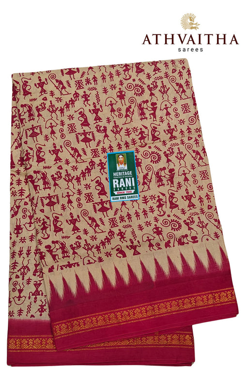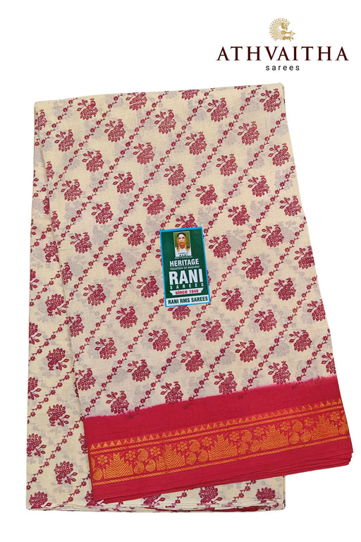 View full detailsHeritage Rani Sungudi Sarees 1 Inch Border Double Side Border-Biscuit-Red