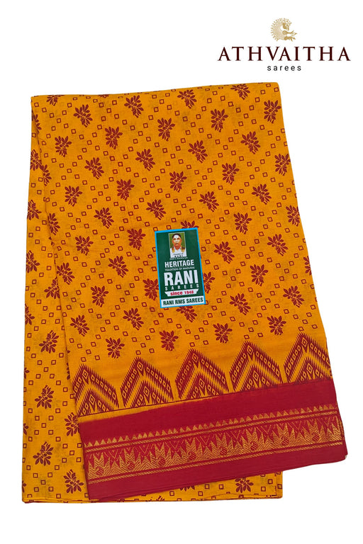 Heritage Rani Sungudi Sarees 1 Inch Border Double Side Border-Yellow-Red