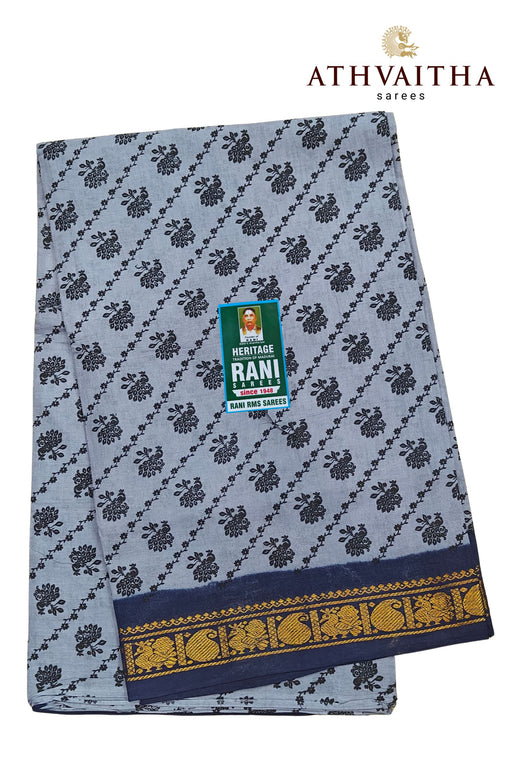 View full detailsHeritage Sungudi Sarees With Contrast Oneside Zari Border-Gray-DarkBlue