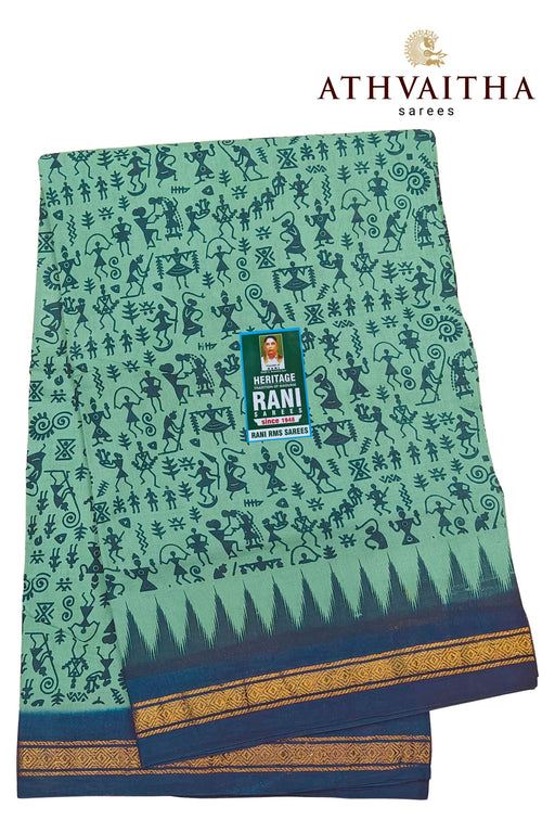 View full detailsHeritage Rani Sungudi Sarees 1 Inch Border Double Side Border-PistaGreen-DarkBlue