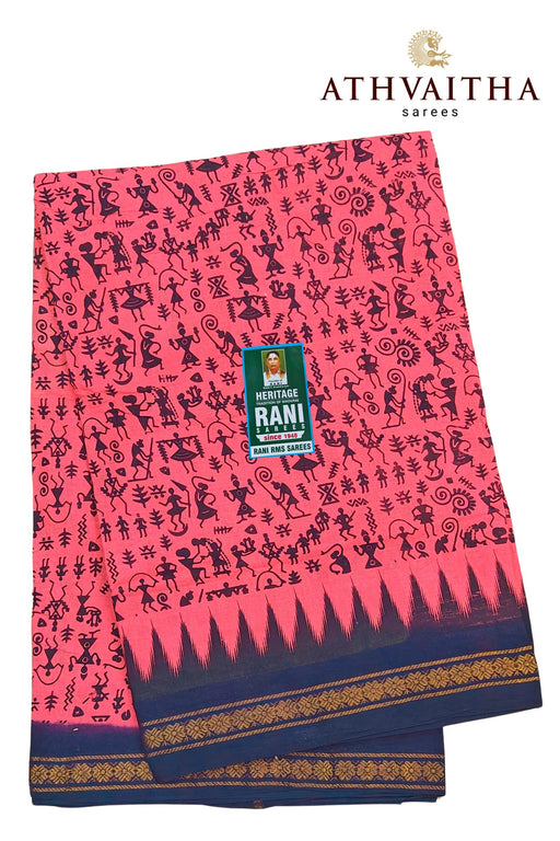 View full detailsHeritage Rani Sungudi Sarees 1 Inch Border Double Side Border-Peach-DarkBlue