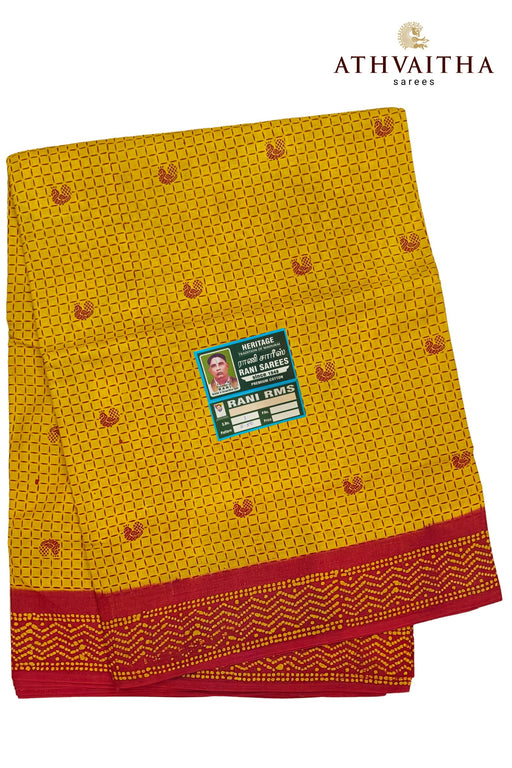 View full detailsHeritage Rani Sungudi Without Zari Cotton Animation Hand Block With Contrast Border Sarees - 9.50Yards Madisar