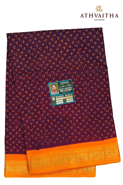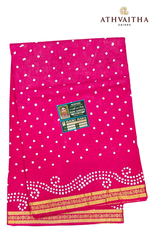 View full detailsSungudi Cotton Polka Dot With Contrast Small Rudraksha Border Heritage Rani Sarees - 9.50Yards Madisar