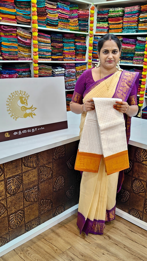 View full detailsRani Sungudi Zari Kattam White-Purple
