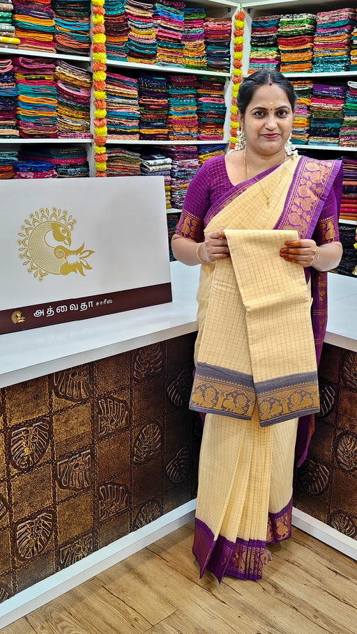 View full detailsSungudi Cotton Checks Sarees Violet With Contrast Gold Border