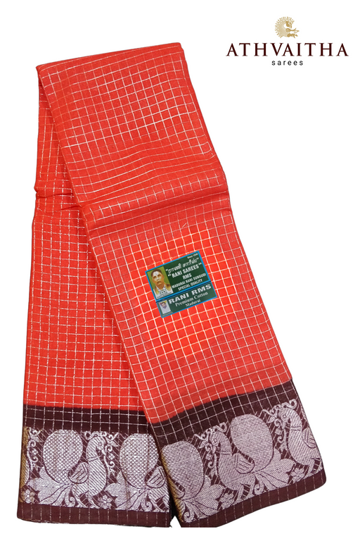 Original price Rs. 2,300.00Original price Rs. 2,300.00 - Original price Rs. 2,300.00Original price Rs. 2,300.00Current price Rs. 1,650.00Rs. 1,650.00 - Rs. 1,650.00Current price Rs. 1,650.00Rani RMS Sungudi Cotton Silver Zari Checks CoffeeBrown - Orange