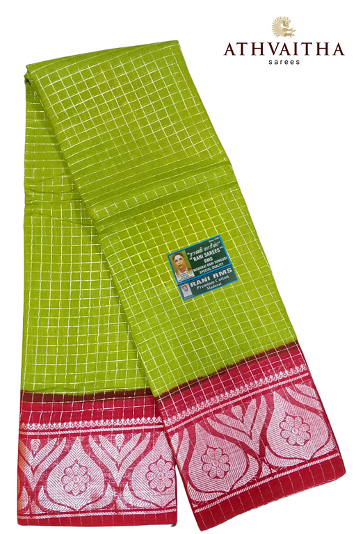 Original price Rs. 2,300.00Original price Rs. 2,300.00 - Original price Rs. 2,300.00Original price Rs. 2,300.00Current price Rs. 1,650.00Rs. 1,650.00 - Rs. 1,650.00Current price Rs. 1,650.00Rani RMS Sungudi Cotton Silver Zari Checks Olive Green - Maroon