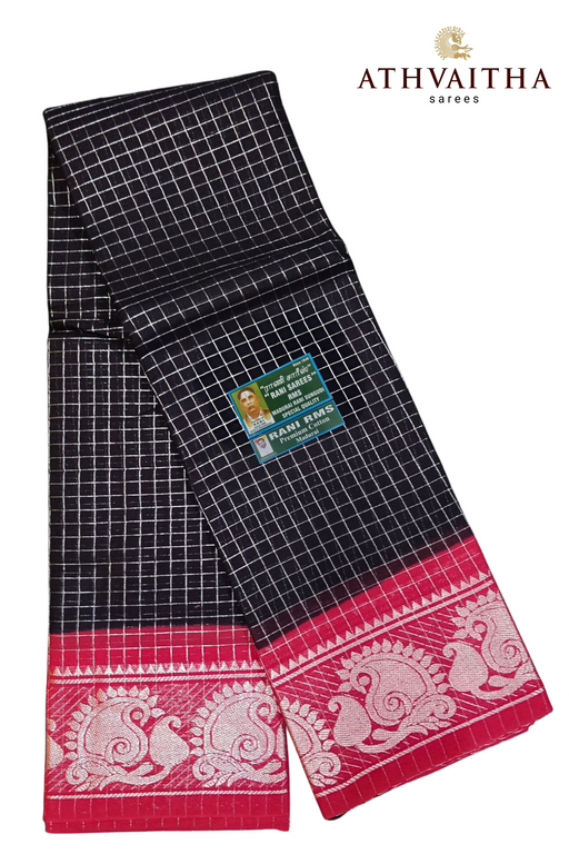 Original price Rs. 2,300.00Original price Rs. 2,300.00 - Original price Rs. 2,300.00Original price Rs. 2,300.00Current price Rs. 1,650.00Rs. 1,650.00 - Rs. 1,650.00Current price Rs. 1,650.00Rani RMS Sungudi Cotton Silver Zari Checks Black - Pink