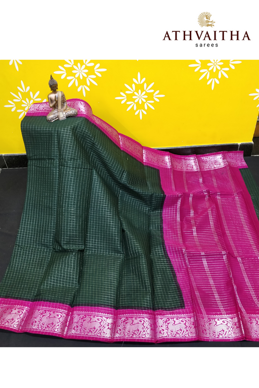 Original price Rs. 2,300.00Original price Rs. 2,300.00 - Original price Rs. 2,300.00Original price Rs. 2,300.00Current price Rs. 1,650.00Rs. 1,650.00 - Rs. 1,650.00Current price Rs. 1,650.00Rani RMS Sungudi Cotton Silver Zari Checks Bottle Green - RaniPink