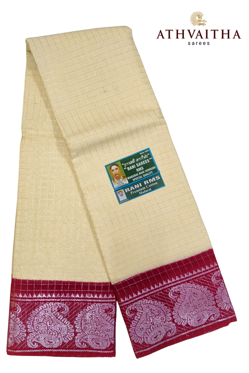 Original price Rs. 2,300.00Original price Rs. 2,300.00 - Original price Rs. 2,300.00Original price Rs. 2,300.00Current price Rs. 1,650.00Rs. 1,650.00 - Rs. 1,650.00Current price Rs. 1,650.00Rani RMS Sungudi Cotton Silver Zari Checks Off-White - Maroon