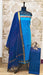Bring home the charm of traditional handloom weaving with this Mangalagiri Cotton Salwar Material Set. Crafted by skilled artisans, this unstitched dress material features a beautiful combination of sky blue top, navy blue bottom, and a contrast navy blue dupatta with golden zari border.